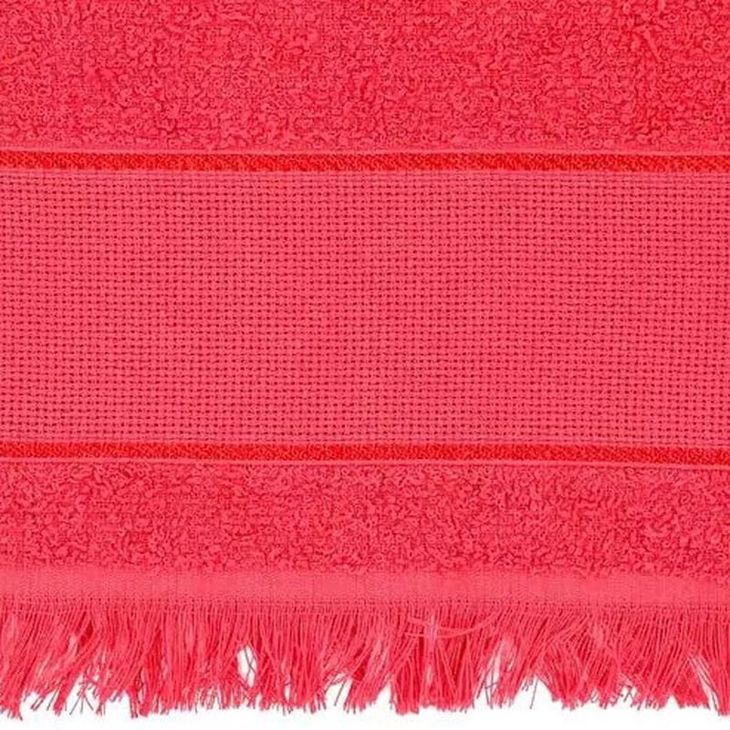 A barra com franja oferece um toque clássico e sofisticado, valorizando o design da toalha.